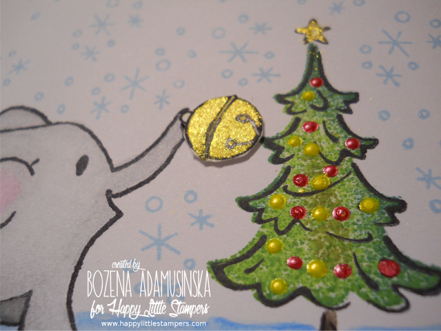 Hi Bozena, This is a clever use of the elephant in the HLS set to fit in with the Christmas Challenge. It's darling the way you've got the little elephant hanging a jingle bell & a Christmas ornament on the pretty tree. Loving the way you've done the background as well. Beautiful card. TFS & Happy New Year. Hugs