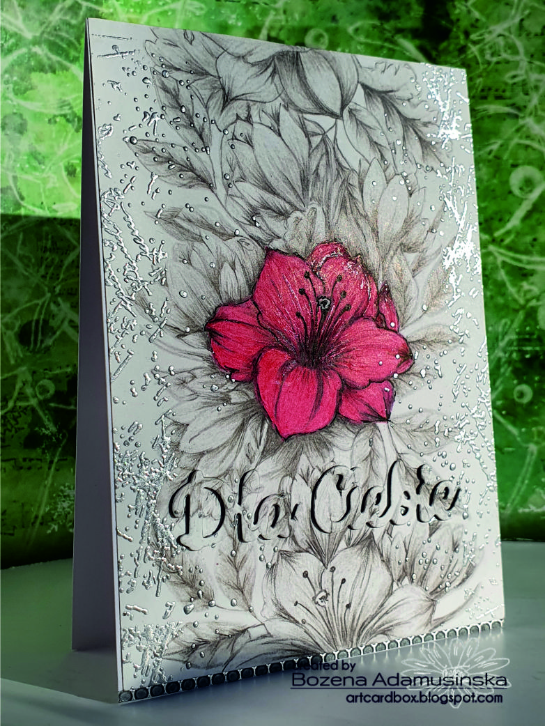 I think this is my all time favorite card that you've done, Bozena! In fact it may be my all time favorite card period! Love the that gorgeous stamped image and the soft shading and the red lily is gorgeous! I love how you added the silver embossing on the edges. Fabulous card, my friend!