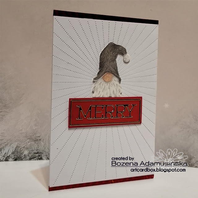 Your gnome is so cute with the pierced burst background and pretty Merry die cut, Bozene! Love this!
